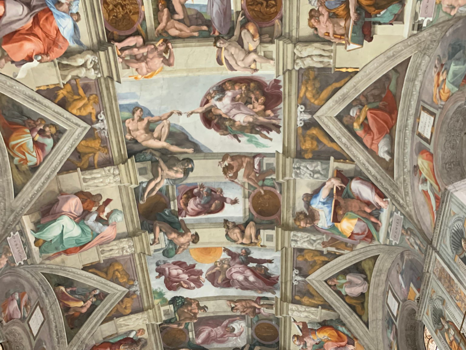 Michelangelo was originally commissioned to paint the Twelve Apostles on the triangular pendentives that supported the ceiling and to cover the central part of the ceiling with ornament. Michelangelo persuaded Pope Julius to give him a free hand and proposed a different and more complex scheme, representing the Creation, the Fall of Man, the Promise of Salvation through the prophets, and the genealogy of Christ. The work is part of a larger scheme of decoration within the chapel, which represents much of the doctrine of the Catholic Church.